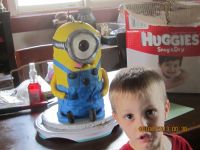 I made your minion for my great nephew’s 4th birthday. Thank you very much for your tutorial. It was the best I found. I am a very amateur cake decorator & I am definitely loving it very much! My 6″ x 2″ cake layers were exactly the size of the template but I couldn’t get legs underneath! Also I had an awful time with my fondant tearing. The yellow was fresh unopened Wilton yellow fondant. I used all I had of that yellow & that blue & it looked tacky to me. But my nephew & his wife were thrilled with it as was Kevin. Thank you!