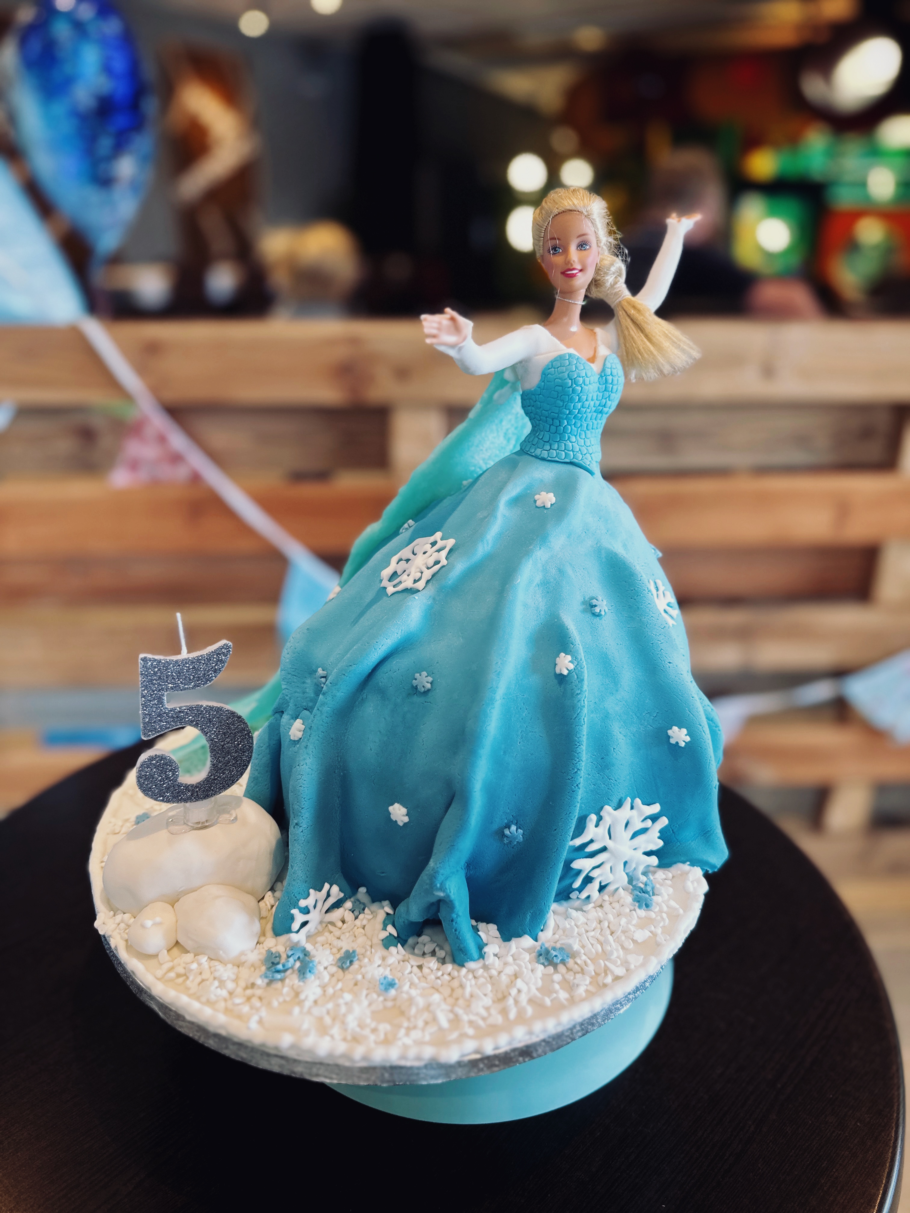 Little girls everywhere have fallen in love with the Disney Frozen movie, watching it repeatedly. Singing the ‘Let It Go’ song until parents don’t want to hear it anymore. Come birthday time they are of course wanting an Elsa cake. This one is as magical as the movie character herself with a flowing dress and beautiful see through glistening cape.