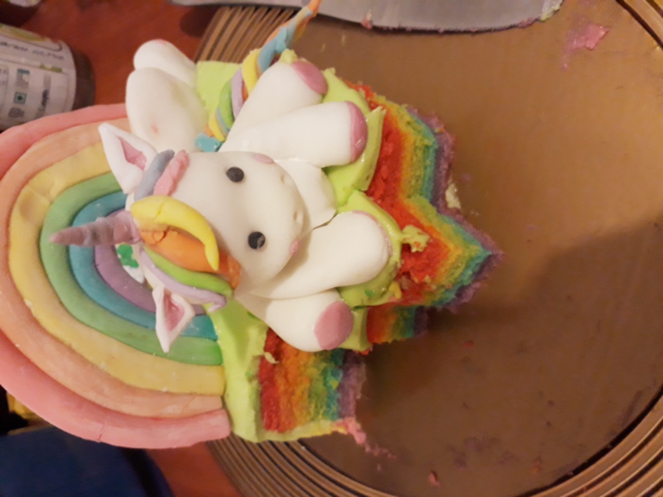 I baked this for my daughters 4th Birthday yesterday. Turned out looking fabulous except for few air bubbles in the top layer. Texture is more on the heavy side not light and fluffy. But taste was good. I think this cake needs lot of patience and needs to follow steps precisely to get good results. Thank you Ann for all the efforts you put on to give us these lovely cakes!! From Sri Lanka ❤