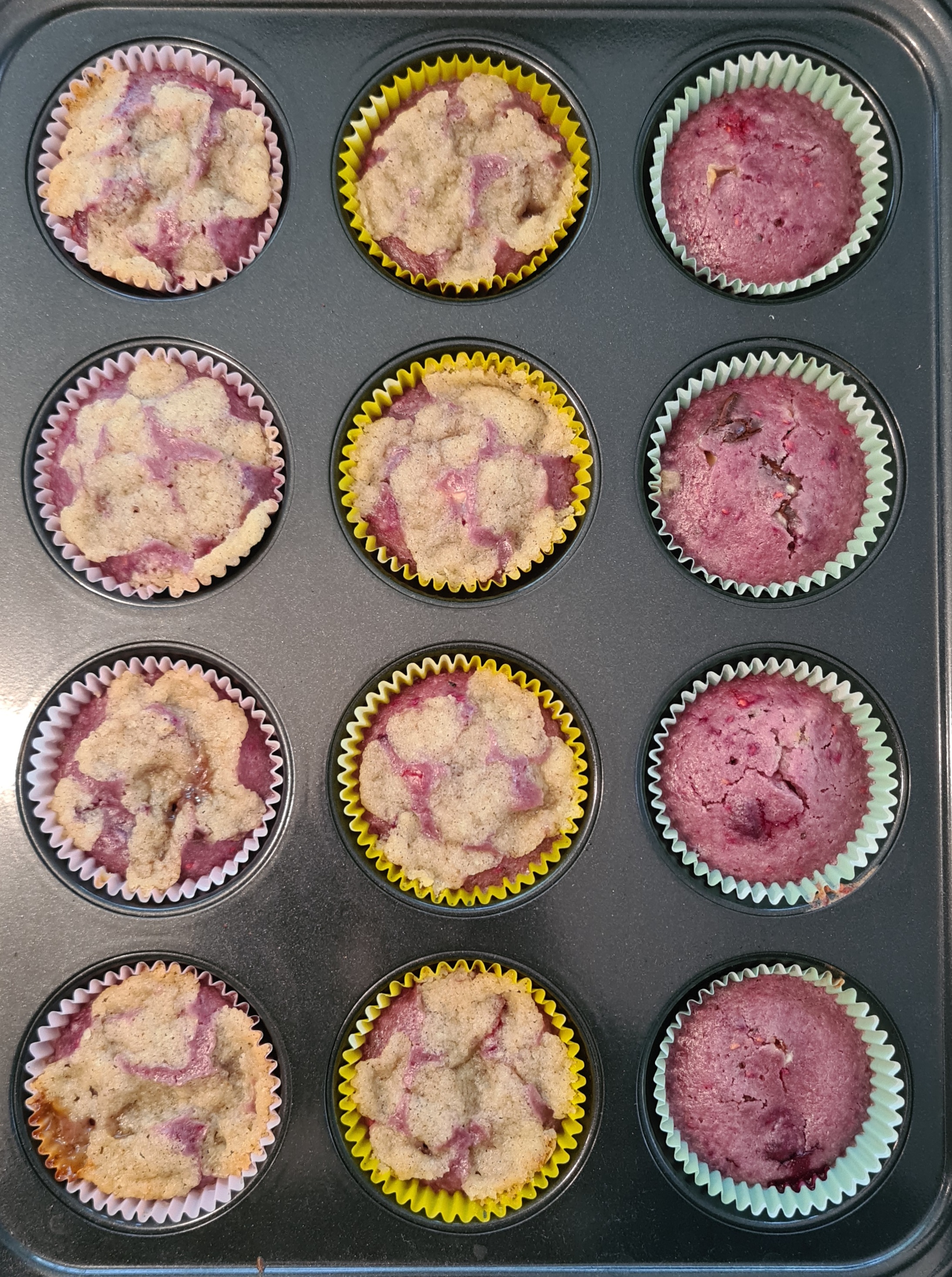 I had to bake a little bit longer than 15 minutes. However the „inserted knife comes out clean“ trick didn’t work, because there was white chocolate all over the knife ? So I just waited until they looked nice and smelled good.